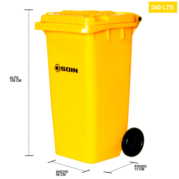 CONTENEDOR DE BASURA CON RUEDAS AMARILLO 240 LTS.