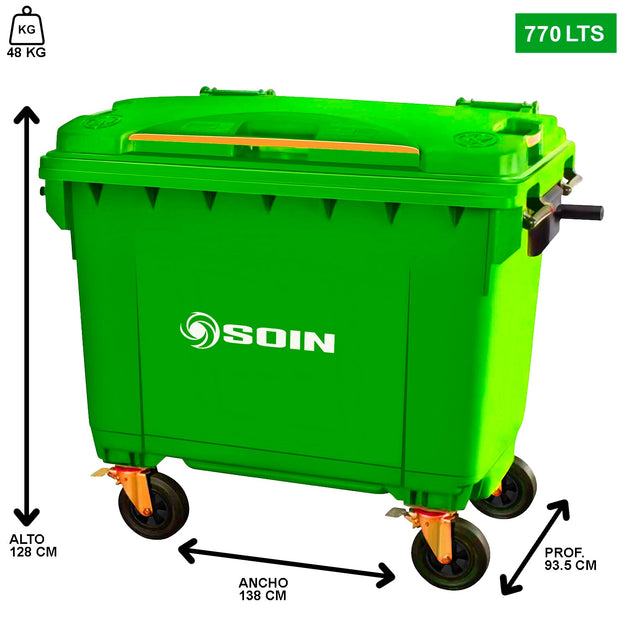 CONTENEDOR DE BASURA CON RUEDAS VERDE 770 L