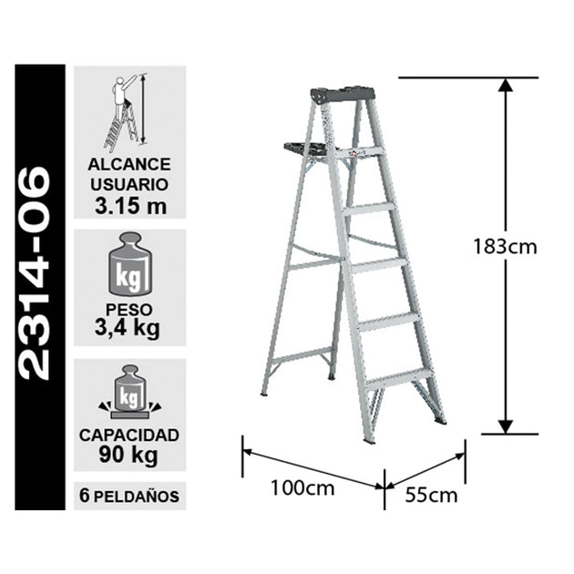 ESCALERA ALUMINIO TIJERA 6 PELDAÑOS CUPRUM