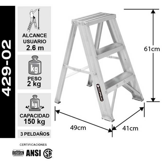 PISO ESCALERA ALUMINIO 3 PELDA OS CUPRUM
