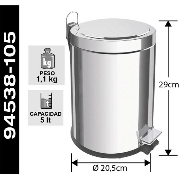 BASURERO PEDAL 5L ACERO INOX TRAMONTINA