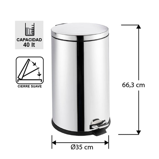 BASURERO ACERO INOXIDABLE CIERRE SUAVE 40 LTS SOIN