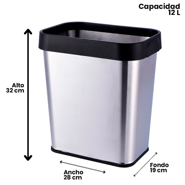 BASURERO ACERO INOXIDABLE OFICINA 12 LTS SOIN