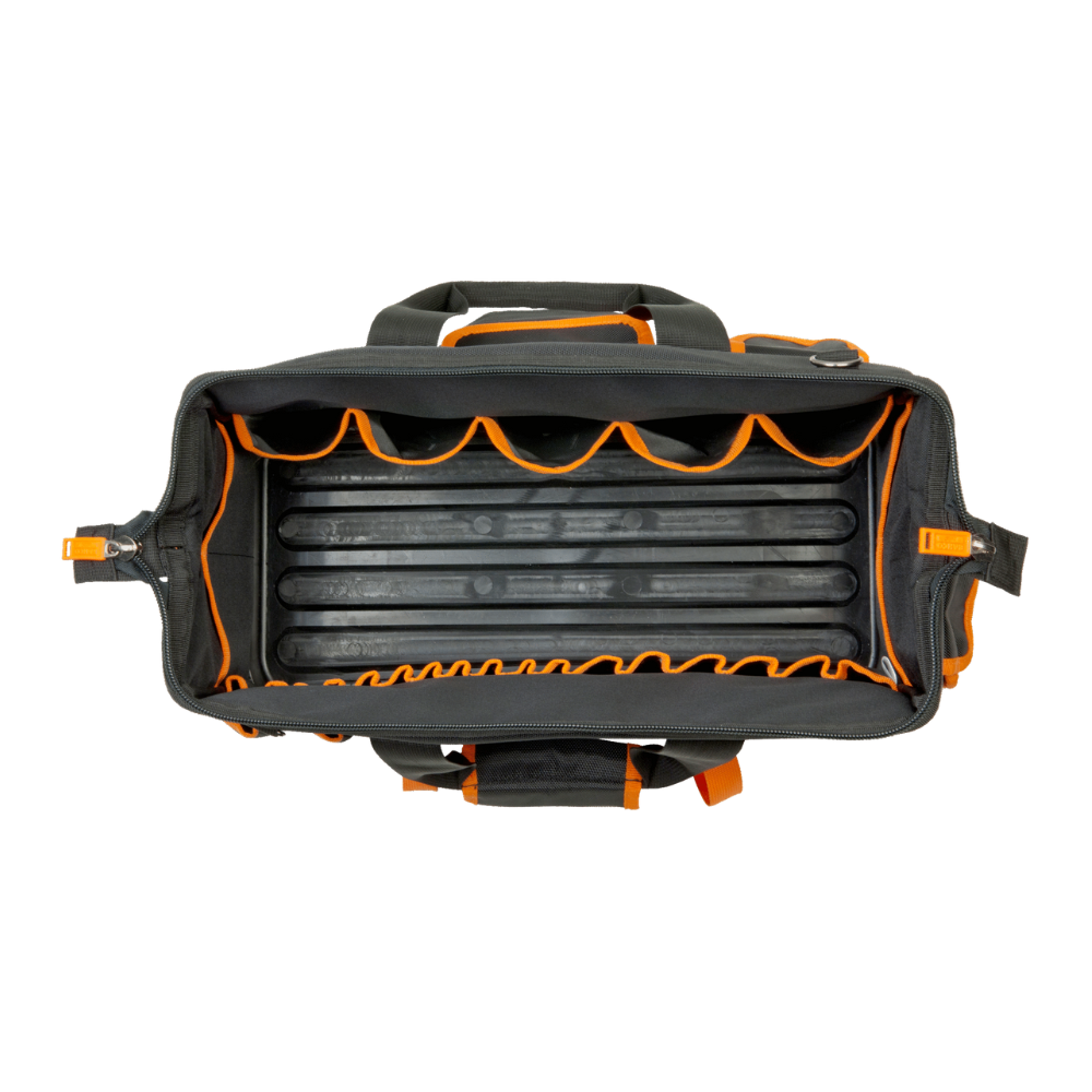 - Bolsa portaherramientas textil de 19" fabricada en una combinación de tejidos de poliéster 600 y 1680 Denier para una resistencia extrema