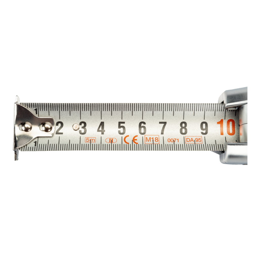 - Marcas permanentes de alto contraste y dos caras de fácil lectura en la hoja de acero inoxidable recubierta con nylon no reflectante
