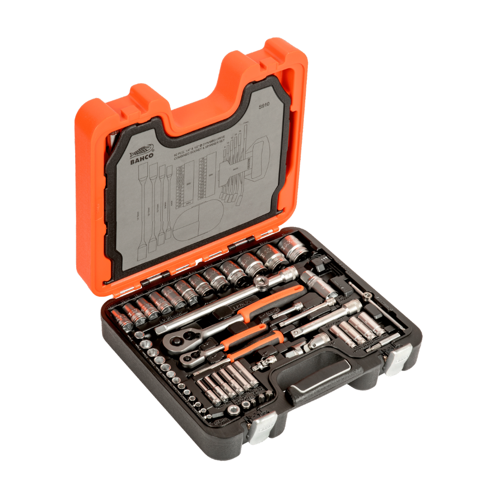 - 13 vasos hexagonales de 1/2": 10, 11, 12, 13, 14, 15, 17, 19, 22, 24, 27, 30 y 32 mm.
