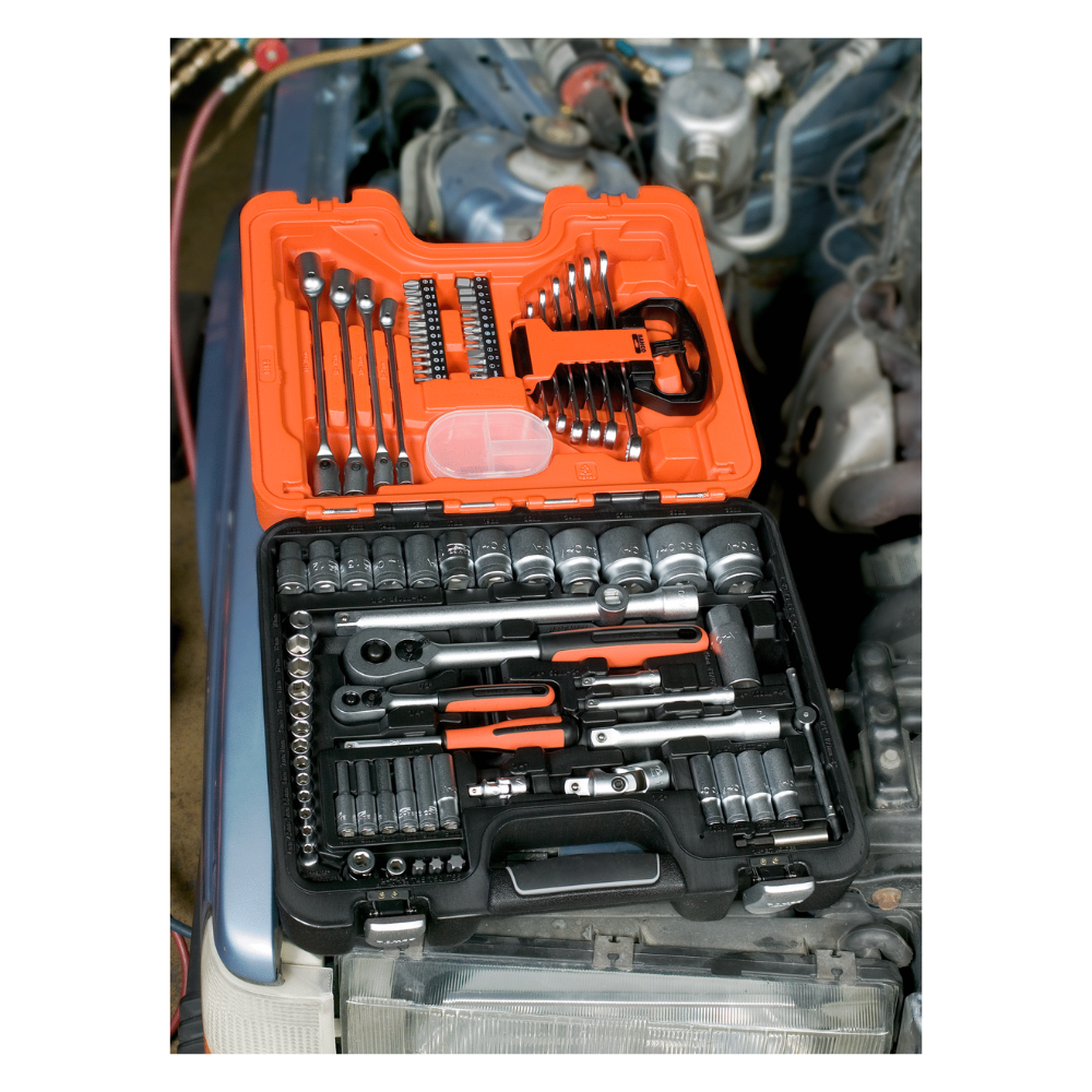 - 6 llaves combinadas: 8, 10, 12, 13, 14 y 17 mm, en un práctico estuche extraíble.