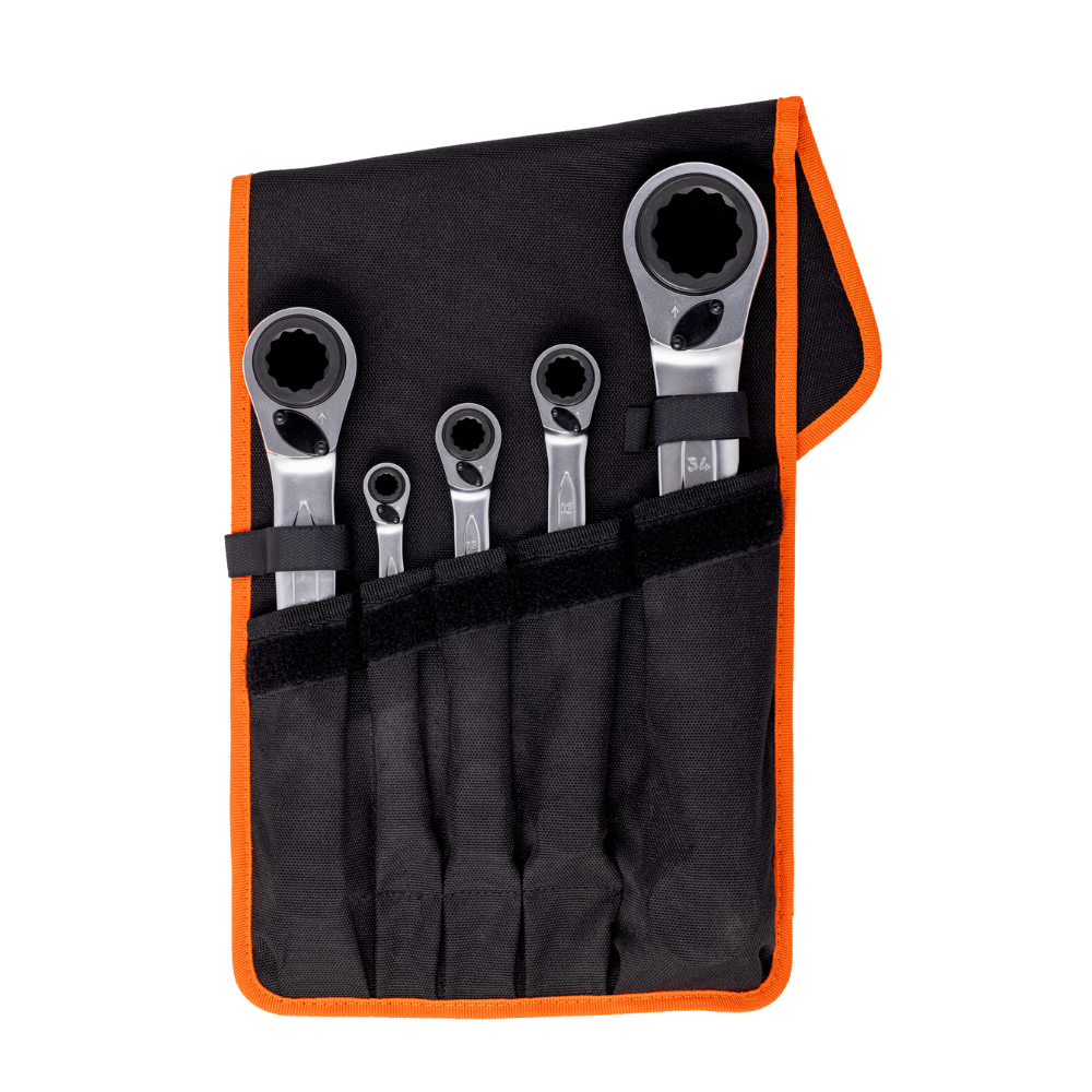Este juego de llaves está fabricado con acero aleado de alto rendimiento, que le confiere una gran resistencia y durabilidad. Su acabado mate cromado proporciona una protección adicional contra la corrosión. La punta de estrella planas le permite acceder a espacios reducidos.