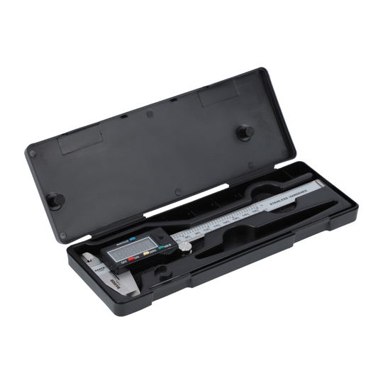 Acero inoxidable Pantalla digital LCD Mide el rango de mm y pulgadas de 0 a 150 mm o 6" con un incremento de 0,01 mm o 0,0005" respectivamente Precisión ± 0,03 mm Resolución 0,01 mm Viene en caja de protección...Precio regular $60.895 -