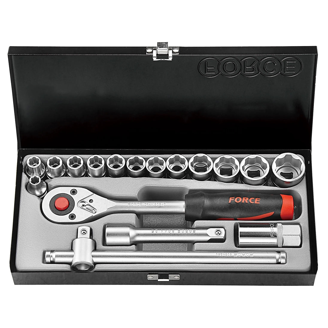 juego dados []1/2", hex. c/r, 13 dados de 5/16" a 1", chicharra, dado de bujias de 13/16", b.corredizo y extension de 5"