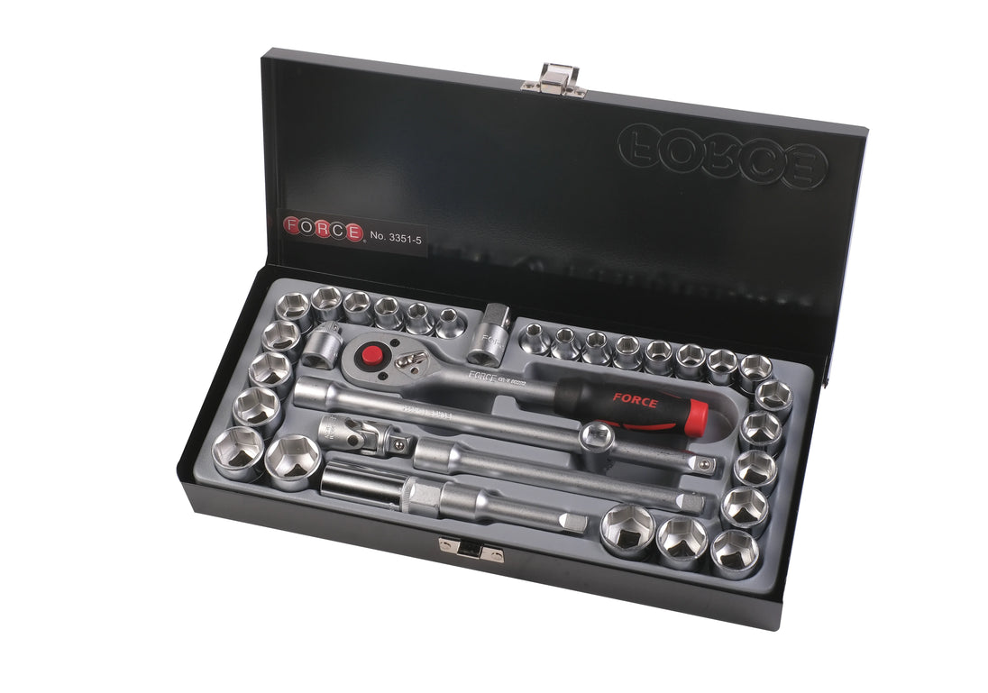 juego dados []3/8" combinado, 15 dados 6-21 mm y 11 dados de 1/4"-7/8", cardan chicharra, 3 extensiones 3"-6"-9", dado bujia, 2 adatadores 3/8"-1/4" y 3/8"-1/2