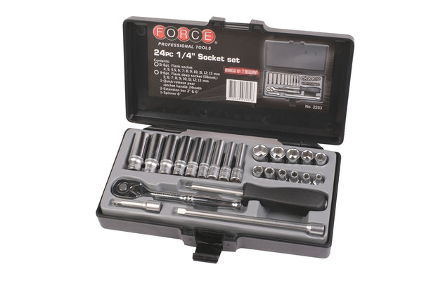 Jgo. dados []1/4" 24 pz., m/m., hexagonal (2253) - FORCE