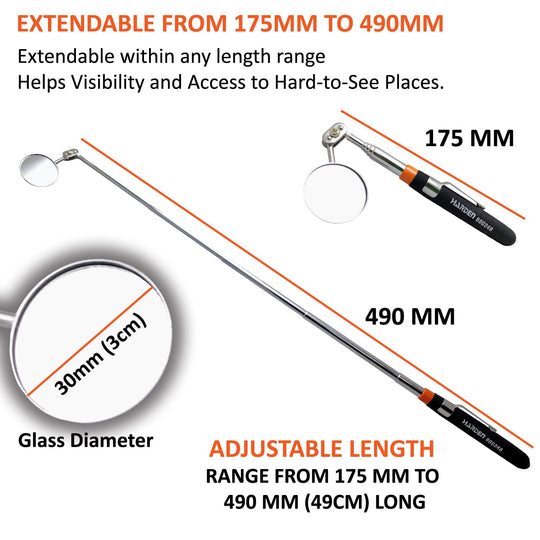 Espejo circular telescópico de inspección de 175x490 mm con cabeza articulada de 360° y mango de PVC antideslizante con imán. Posee juntas de tipo bola doble que permite mover al espejo a cualquier dirección. Ideal para...Precio regular $3.990