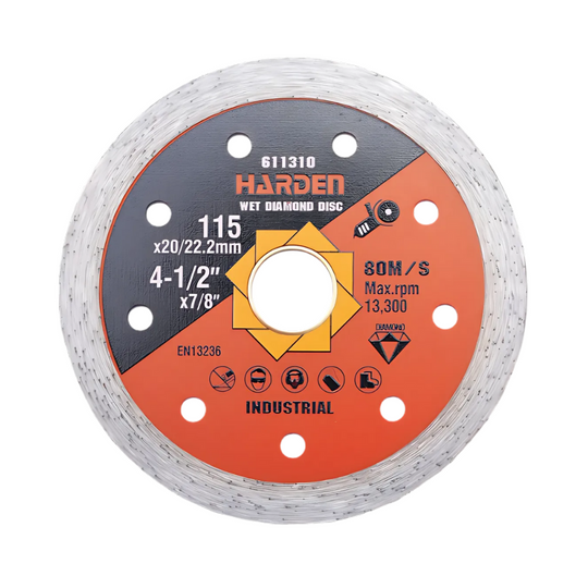 El disco diamantado húmedo HARDEN proporciona cortes exactos y efectivos en materiales resistentes como concreto, piedra y cerámica. Su diseño con segmentos de diamante ofrece una durabilidad superior y un desempeño destacado en entornos profesionales. Perfecto...Precio regular $3.690 -