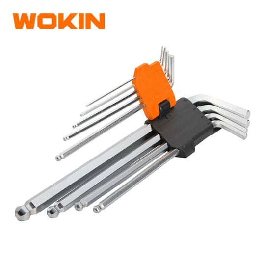 Juego de 9 llaves Allen con brazo extra largo y punta esférica