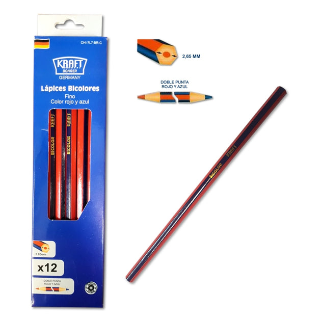 LAPIZ CARPINTERO KRAFT BOHRER BICOLOR DELGADO- CAJA 12 PZAS.