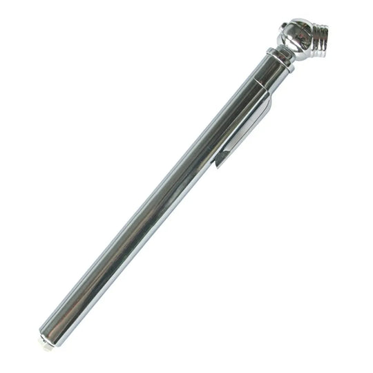 medidor de presion de neumaticos con manometro de doble escala 10-100 psi, 0.5-7.5 bar, cuerpo de metal, boton para desinflar, mantiene la lectura hasta que se aprieta el boton, en blisterPrecio regular $8.560 -