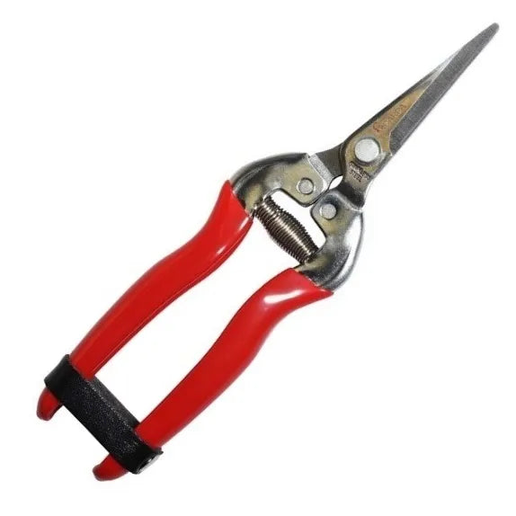 tijera para cosechar y limpiar racimos recta de 19 cm., inox., mango plastico