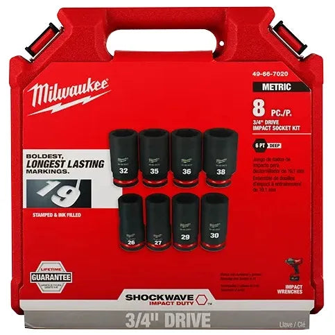 Jgo dados impacto largo 3/4[] hexag. 8 piezas 26-38mm (MILWAUKEE0024) - MILWAUKEE