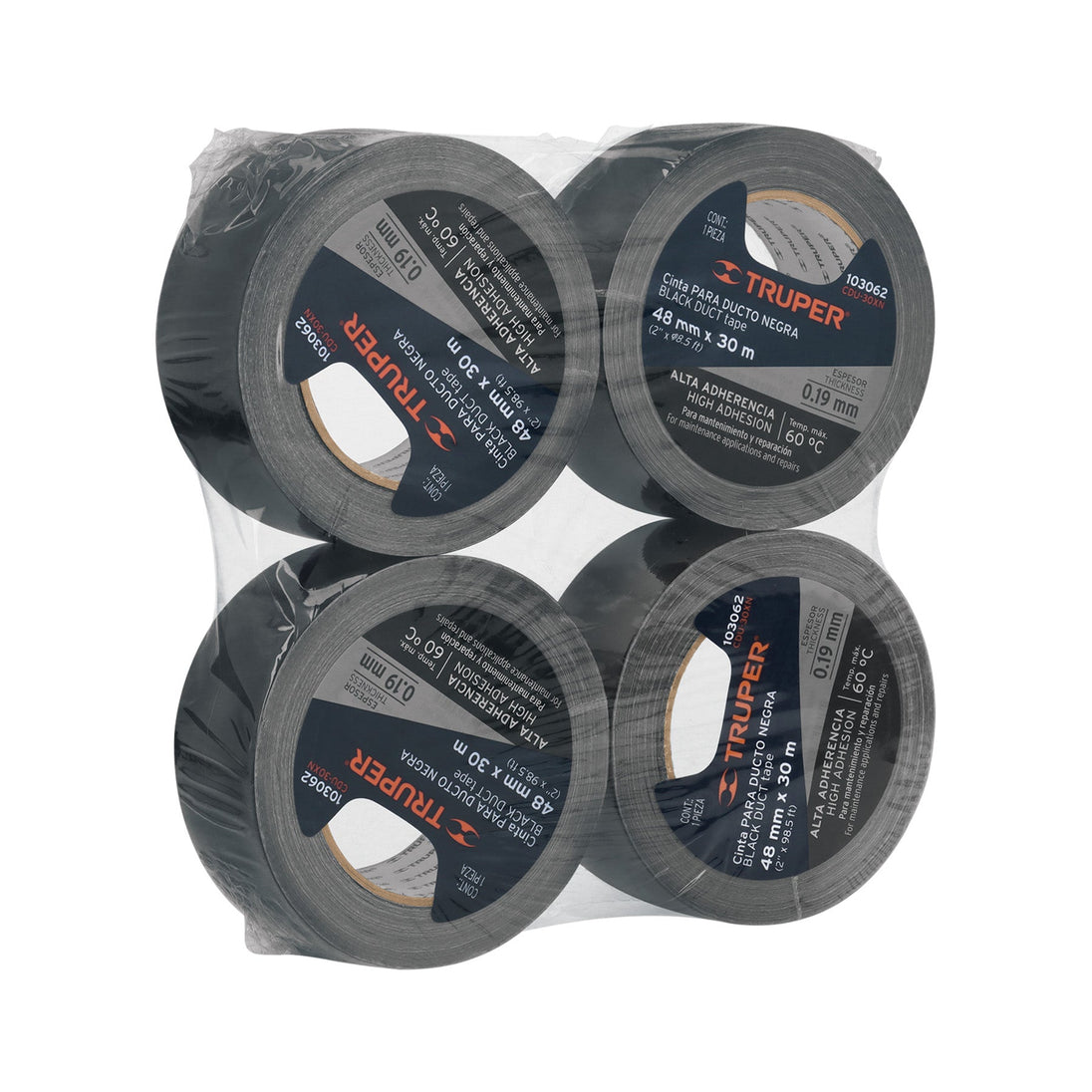 CINTA P/DUCTOS TRUPER NEGRA ADHESIVO TERMOFUSIBLE (PQTE 4 ROLLOS) #CDU-30XN (103062)