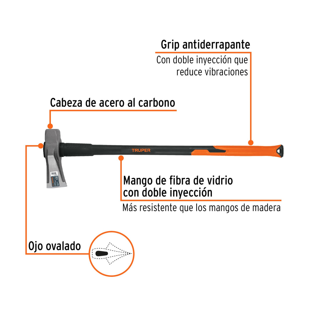 - Cabeza de acero al carbono con doble tratamiento térmico para mayor resistencia y durabilidad de filo