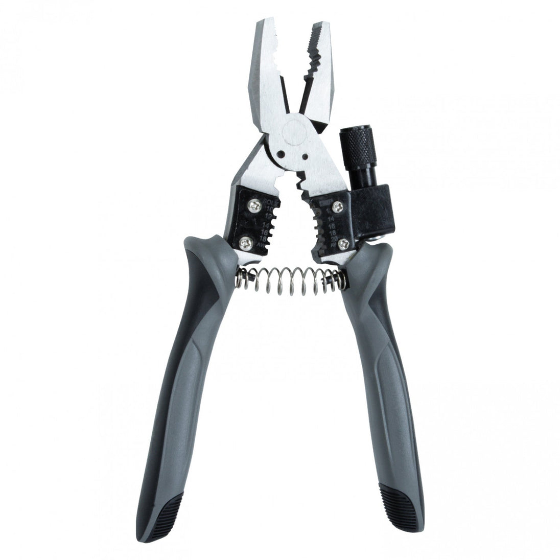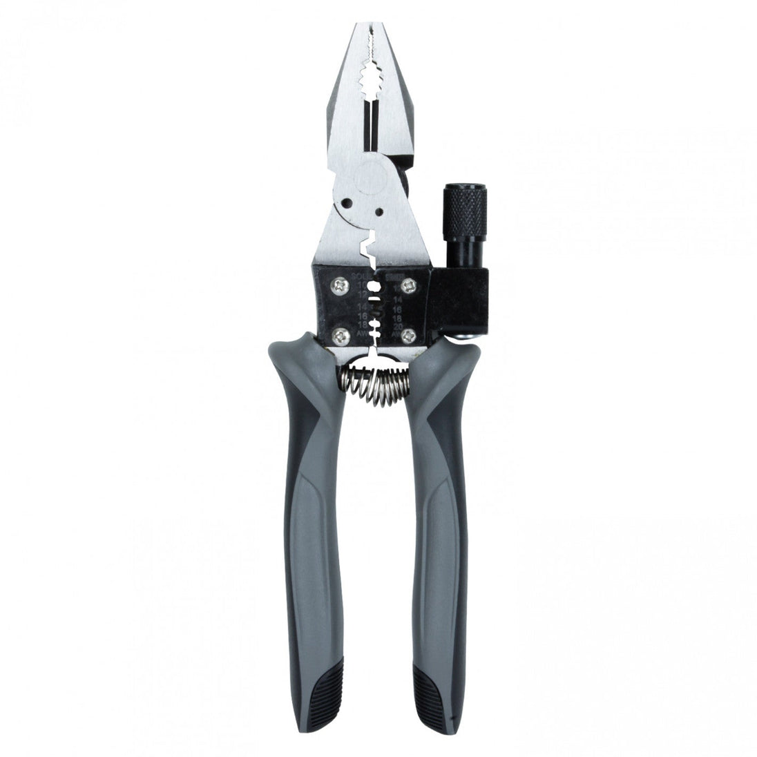 ALICATE UNIVERSAL DE 8 PULGADAS CON LUZ LED INTEGRADA, MANGO ANTIDESLIZANTE PARA MEJOR SUJECIÓN. INCLUYE RESORTE QUE OPTIMIZA EL USO DE ENERGÍA, PELADOR DE CABLE Y TIJERA CON DIENTES TRITURADORES, ADEMÁS DE UNA ABRAZADERA PARA MAYOR FUNCIONALIDAD.