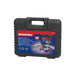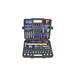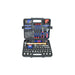 Maletín de 165 herramientas incluye dados métricos y SAE para 1/4" y 3/8", adaptador, 33+58 puntas, 22 llaves hexagonales, soporte magnético, huincha de 3 m, martillo 7 oz, alicate punta larga 6", llave ajustable 6", 5 llaves punta corona, 6 destornilladores precisión, chicharra 3/8" y pieza BMC.