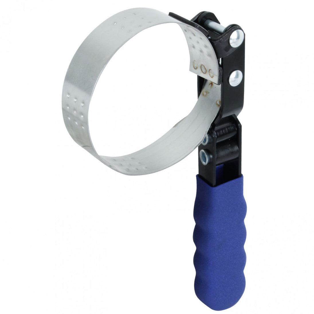 Llave para filtro tipo cinta de 70 a 82,5 mm con banda de acero de 1" que garantiza un agarre seguro sin dañar el filtro. Cuenta con un mango cómodo recubierto de vinilo y un cabezal flexible con acción giratoria de 180 grados y hoyuelos para mayor precisión. Ideal para desmontar la mayoría de filtros en automóviles y camiones.