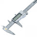 Pie de metro digital de 150 mm es un calibrador electrónico con pantalla LCD para mediciones rápidas en métrico y SAE. Incluye encendido/apagado manual, puesta a cero, cuerpo de acero inoxidable, precisión de 0,02 mm / 0,001", varilla de profundidad, ajustes por rueda, mediciones interior/exterior y baterías.