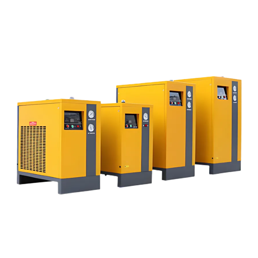 El secador de aire se divide en tres sistemas: intercambio de calor, refrigeración y sistema de control eléctrico. El aire comprimido ingresa al preenfriador de aire-aire o aire-agua para eliminar el contenido de calor, luego ingresa al aire al intercambiador de calor de aire y se enfría a una temperatura más baja. Después de ingresar al evaporador, el aire al calor del refrigerante reduce la temperatura del aire a 2-50 °C (temperatura del punto de rocío), la humedad se condensará en líquido, que se separará mediante el separador y se drenará mediante válvula solenoide de drenaje.