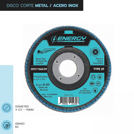 DISCO FLAP 4 1/2" METAL / ACERO INOX GR80 DFZ 1158 (1158) - ENERGY