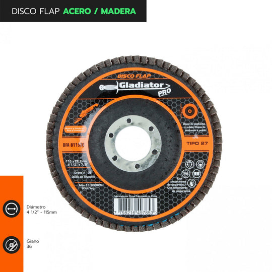 DISCO FLAP 4 1/2" ACERO / MADERA GR36 DFA 811536 (811536) - GLADIATOR