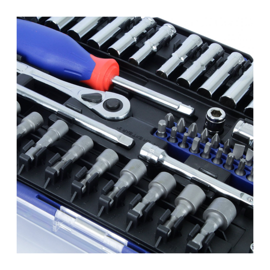 Juego de 70 dados para 1/4" abarca tomas SAE y métricas estándar y profundas, articulación universal, nut drivers, coupler, barras de extensión, chicharra de liberación rápida, spinner handle y 20 bits con holder para un kit...Precio regular $37.790 -