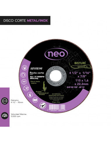 DISCO CORTE 4 1/2" x 1.6mm METAL/INOX 1211516 (1211516) - NEO