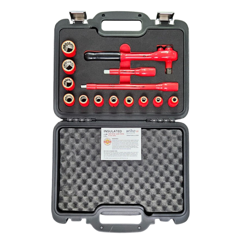 Cada herramienta aislada de Wiha se prueba individualmente a 10 000 voltios de CA y tiene una clasificación de 1000 voltios de CA (1500 voltios de CC) para brindar seguridad y tranquilidad en aplicaciones energizadas. Todas las herramientas aisladas de Wiha cuentan con la certificación VDE y cumplen con los estándares de prueba EN/IEC 60900 para protección contra explosión de arco eléctrico, las especificaciones estándar ASTM F1505 para herramientas manuales aisladas y aislantes, los estándares NFPA-70E para seguridad eléctrica en el lugar de trabajo y los puntos de referencia de pruebas CSA para seguridad. y rendimiento. El juego de vasos aislados métricos viene con una variedad de vasos para una variedad de tamaños de sujetadores. Los enchufes vienen en tamaños que se miden en milímetros para adaptarse a sujetadores con cabeza de tamaño métrico.