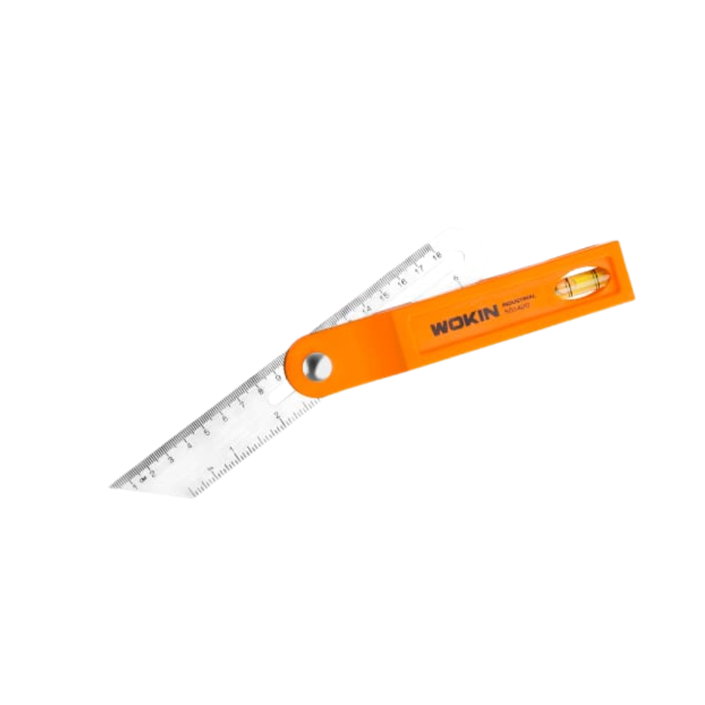 El transportador ajustable con nivel WOKIN es una herramienta de precisión, ideal para marcar y transferir ángulos en aplicaciones de carpintería, metalistería y enmarcado.
