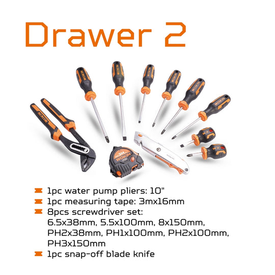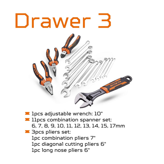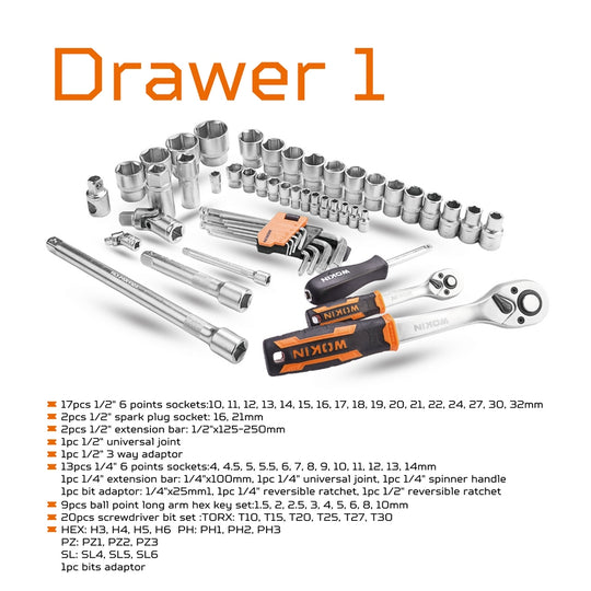 Caja de Herramientas con 98 Piezas Wokin: La Solución Completa para Todas las Tareas Gracias a sus 3 Cajones, que permite una Organización sin Esfuerzo: Cajón 1: 17 Piezas de 1/2" Vasos de 6 Puntos: Desde...Precio regular $149.990 -