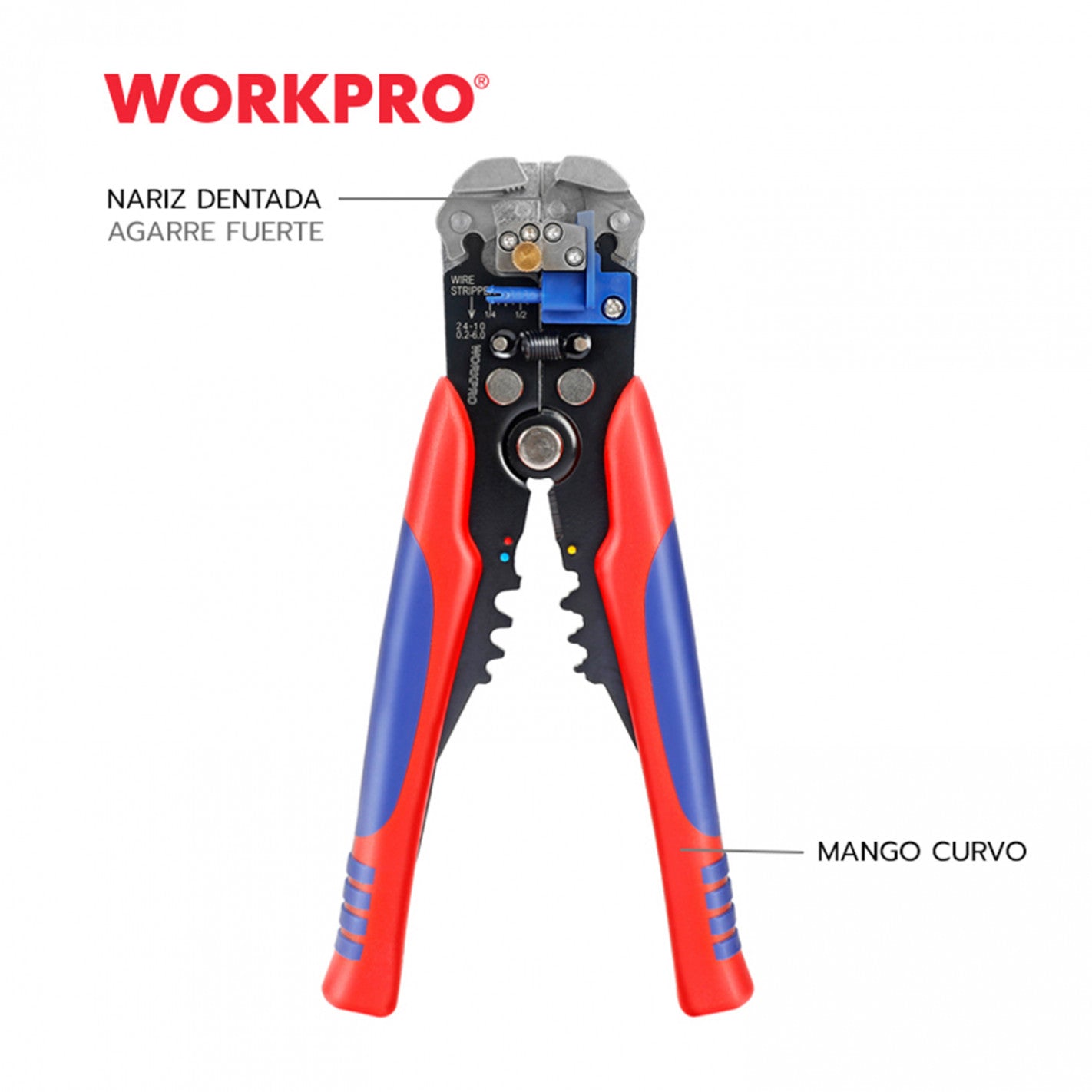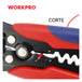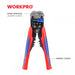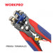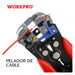El ALICATE PELA CABLES MULTIUSOS 3 EN 1 WP291007 de WORKPRO incorpora un mecanismo autoajustable que facilita pelar conductores con precisión, adecuado para cables de cobre y aluminio de 10 a 24 AWG. Sus funciones combinadas permiten cortar, pelar y prensar terminales, con prensado integrado para terminales aisladas de 22-10 AWG y terminales no aisladas en varios rangos. Fabricado con materiales duraderos y equipado con mangos de agarre cómodo, es una herramienta versátil y confiable para trabajos eléctricos profesionales.