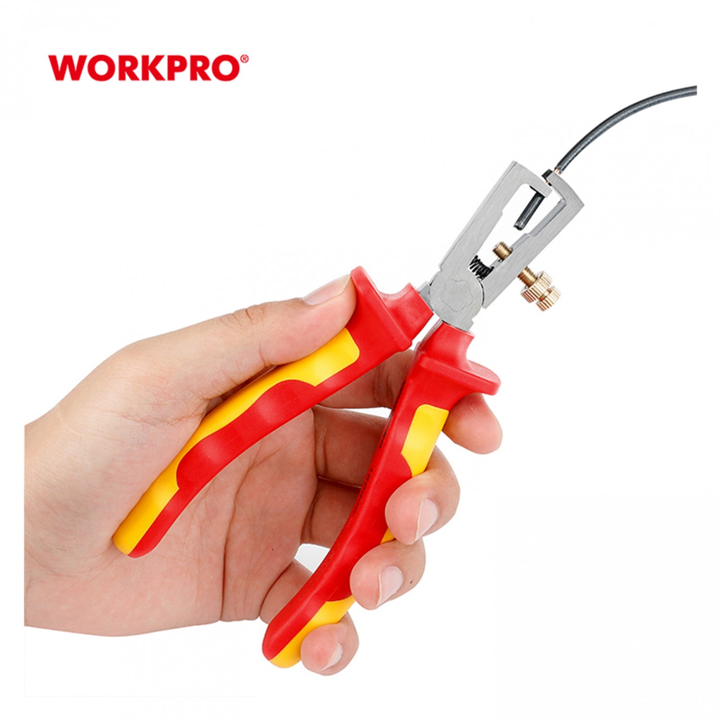 Alicate pelacables aislado de 6", fabricado conforme a la norma EN/IEC 60900. Cada unidad se somete a pruebas individuales de 10.000 V CA y está certificado para uso seguro hasta 1.000 V CA. Cuenta con mangos ergonómicos de dos componentes que garantizan un agarre cómodo. Diseñado para conductores con hilos simples, múltiples o finos, con aislamiento de plástico o caucho, de hasta 5,0 mm de diámetro o sección de cable de hasta 10 mm. Incluye ajuste sencillo mediante tornillo moleteado y contratuerca para adaptarse al diámetro del cable. El filo presenta una dureza aproximada de 45 HRC.