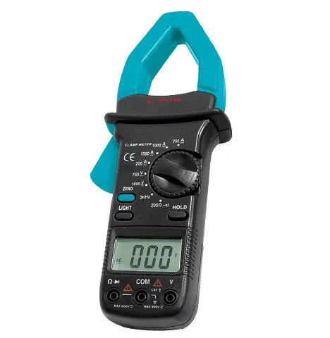 amperimetro de tenaza para corriente continua (dca) y alterna (aca), con data hold, proteccion contra sobrecargas, continuidad, mide dcv (1000v), acv (750v dca (200a-1000a), aca (200a-1000a), ohms (200 ohms), frecuencia (2khz)