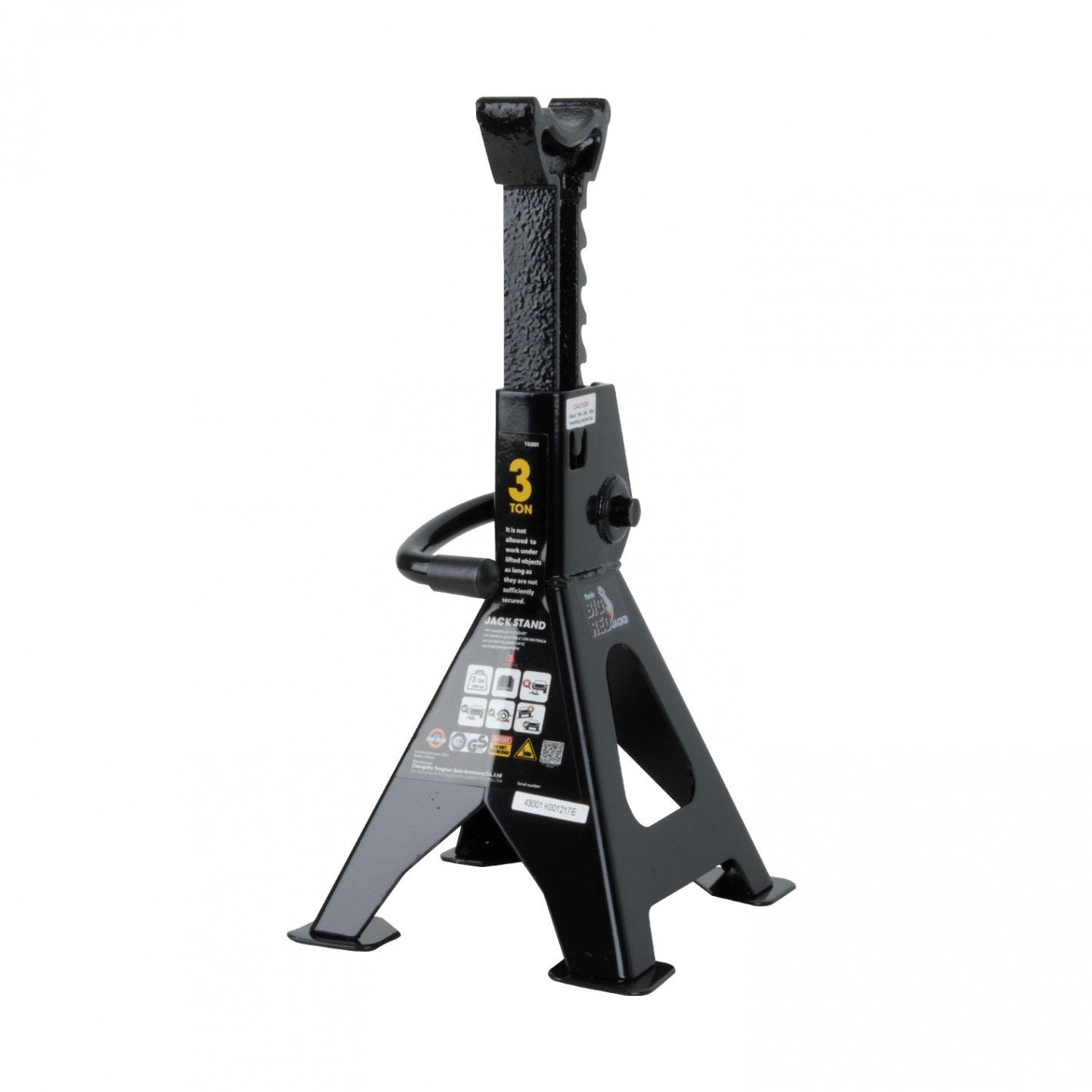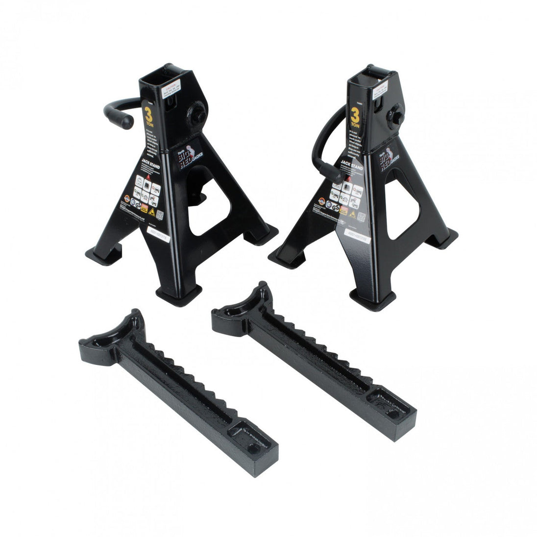 Banquillo mecánico 3Ton. Contenido: PAR DE BANQUILLOS. Banquillo Mecánico especialmente diseñado para soportar el peso de un vehículo después que ha sido levantado por una gata hidráulica. Si piensas trabajar y mantenerte un tiempo prolongado debajo del vehículo, por tu seguridad no uses gatas hidráulicas, para este fin usa los soportes o banquillos mecánicos. El modelo que presentamos es un par de banquillos hechos de hierro fundido para uso pesado. Cuenta con mecanismo de matraca, cuerpo construido de una sola pieza, superficie de contacto largo y patas de gran área para resistir el hundimiento, cubierta esmalte para evitar la corrosión, capacidad de carga es de 3 Toneladas y se logra utilizando el par de soportes. Su altura mínima de 285 mm y una altura máxima de 445 mm.