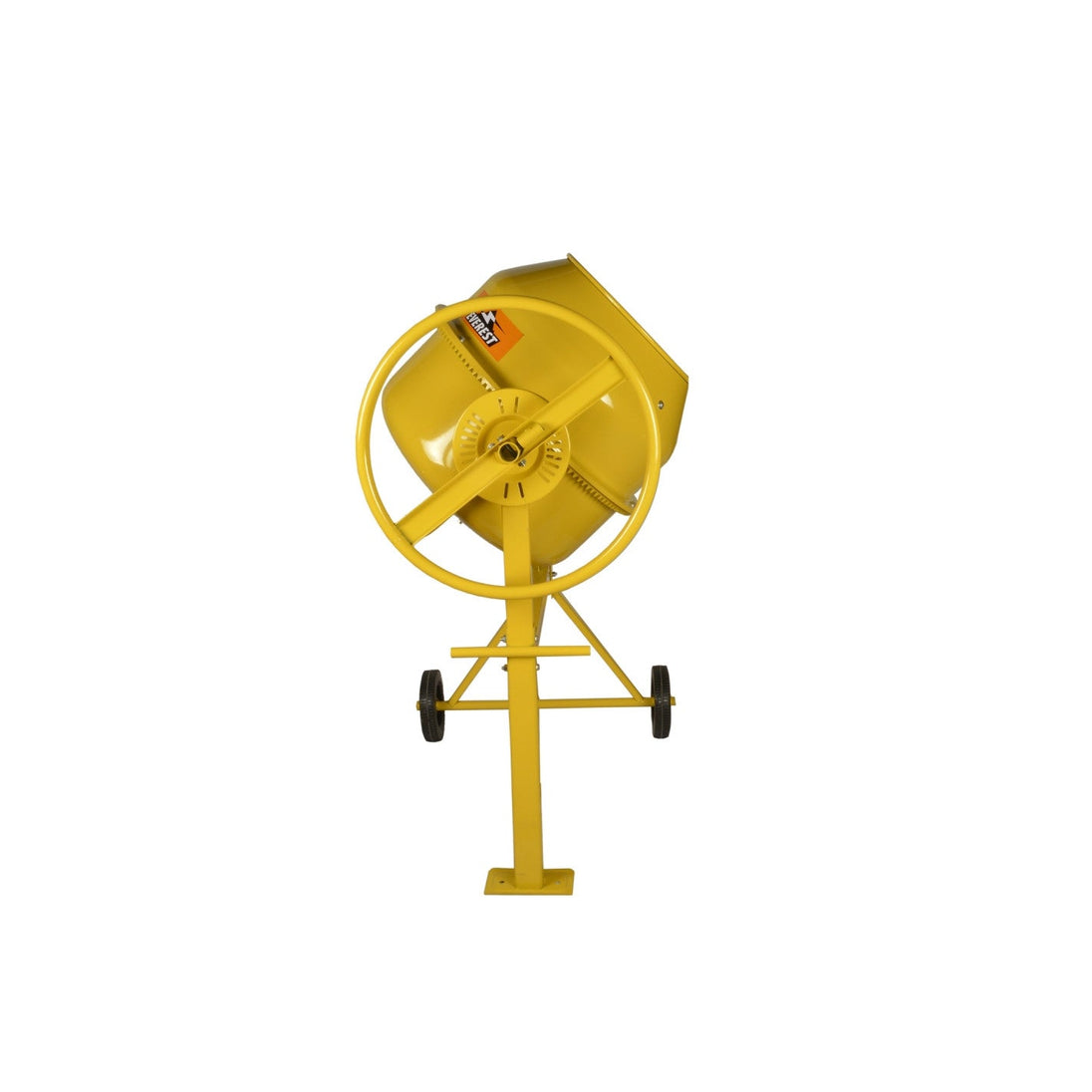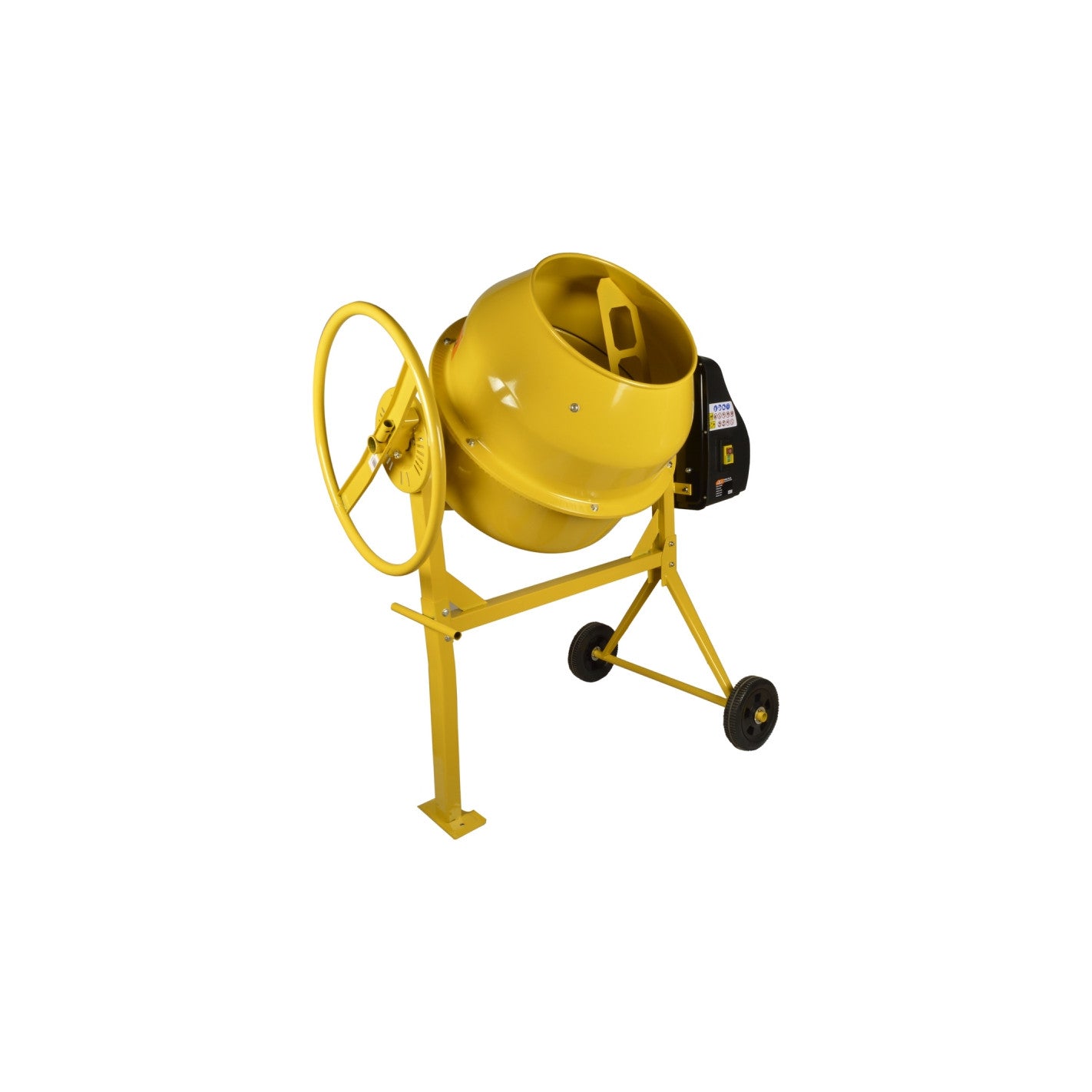 Betonera de 130 litros equipada con un motor de 3/4 Hp, es monofásico de 220 voltios. Permite una fácil operación de volteo al contar con un aza con freno.