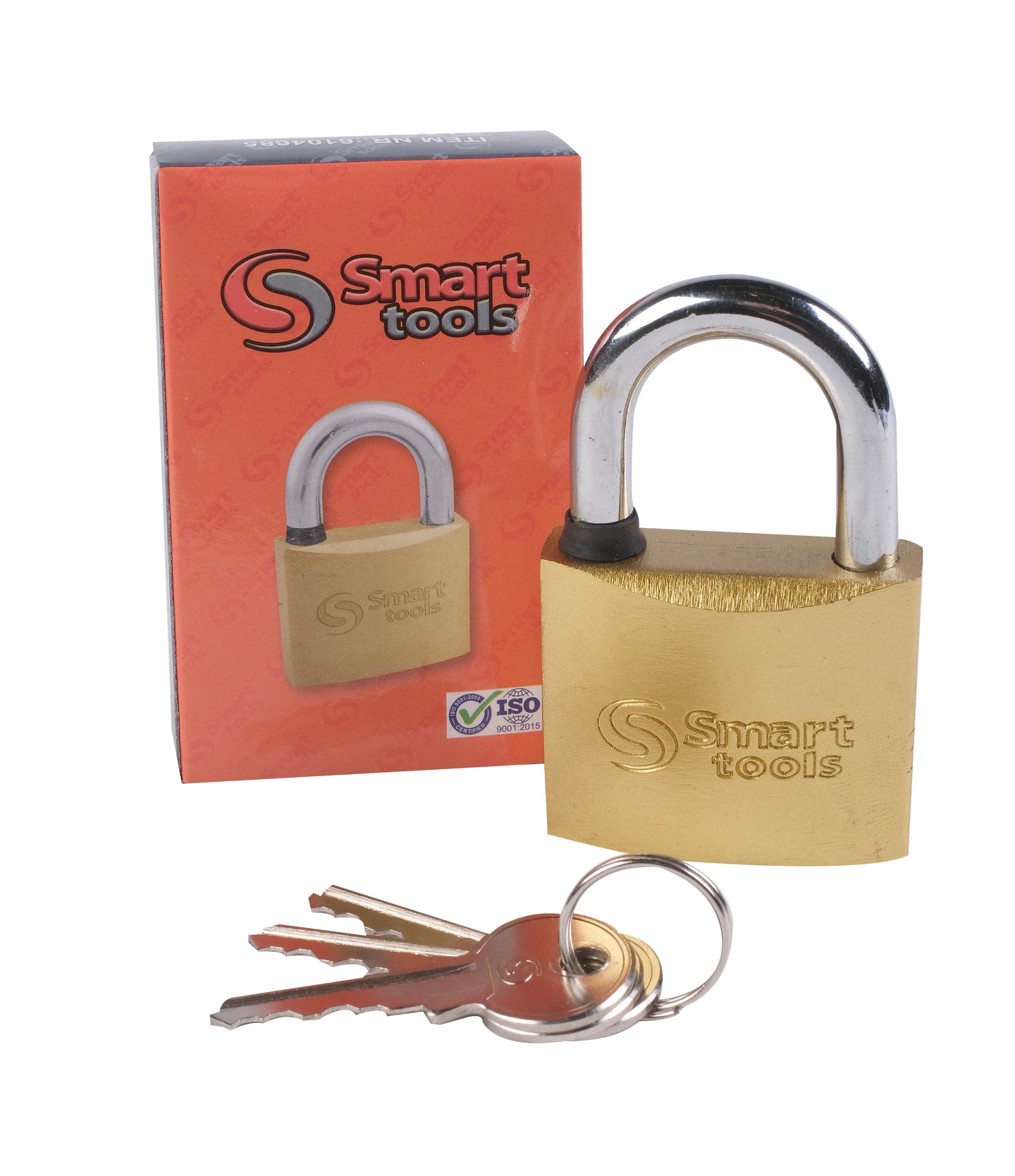 candado acero bronceado 50 mm. en caja con 3 llaves, arco de acero endurecido, cilindro de bronce