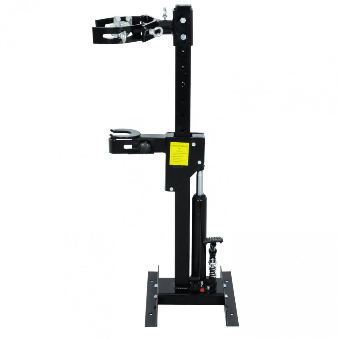 Prensa Hidráulica espirales CARACTERISTICAS: Montaje y desmontaje de amortiguadores Acondicionamiento de pedal BENEFICIOS: Operación hidráulica con accionamiento de pedal: Permite una compresión controlada y segura del resorte, reduciendo el esfuerzo físico y aumentando la precisión en el trabajo. Compatibilidad con múltiples tamaños de resortes: Las siete posiciones de ajuste intercambiables aseguran una adaptación adecuada a diversos tipos de resortes, incrementando la versatilidad de la herramienta. Construcción robusta y diseño simple: Fabricado con materiales de alta resistencia, garantiza durabilidad y un funcionamiento confiable en entornos de trabajo exigentes.