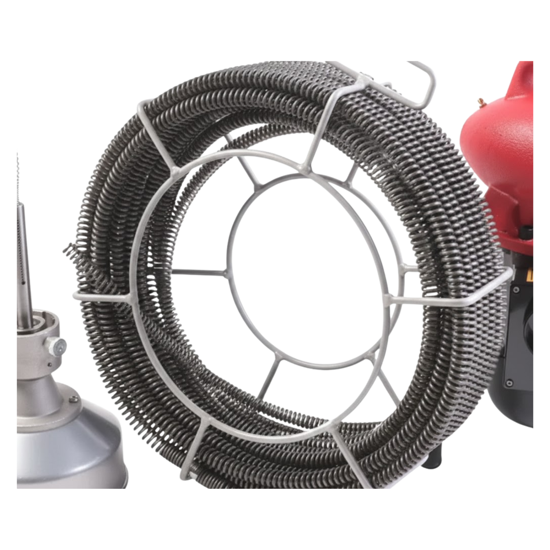 Destapadora CQ-75 de uso profesional, compatible con tuberías de 3/4" a 4" de diámetro. Operación versátil mediante motor eléctrico o accionamiento manual con manivela según necesidad. Dotada de cable de acero flexible y resistente de 15 metros que penetra la cañería para eliminar obstrucciones efectivamente.