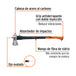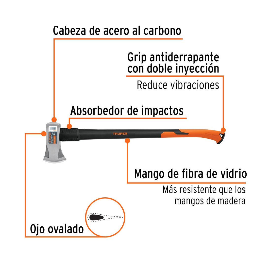 - Cabeza de acero al carbono con doble tratamiento térmico para mayor resistencia y durabilidad de filo