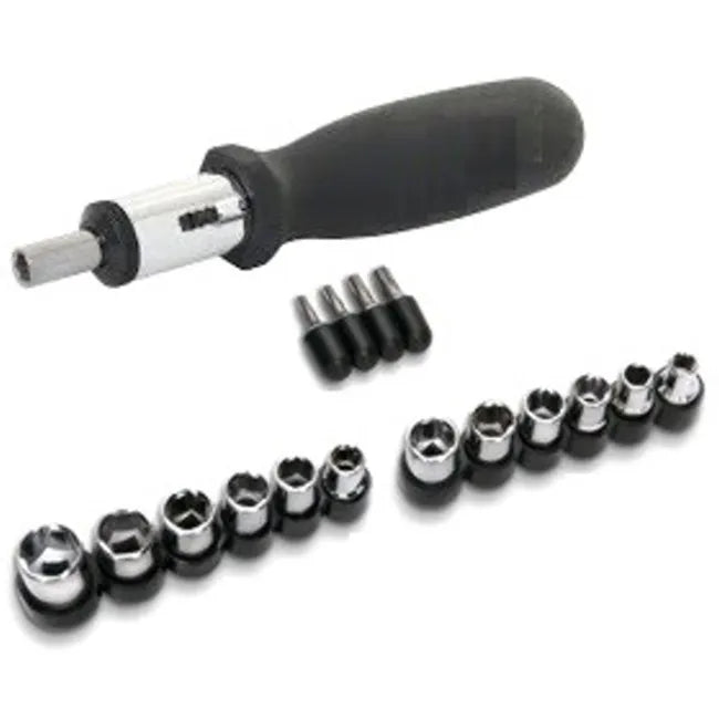 juego de dados 17 piezas [] 1/4" con destornillador cruz y plano
