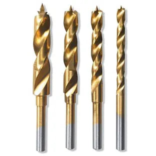 juego de brocas con punta de helice cubiertas de titanio, para uso en madera de 1/8" - 5/32" - 3/16" y 1/4"