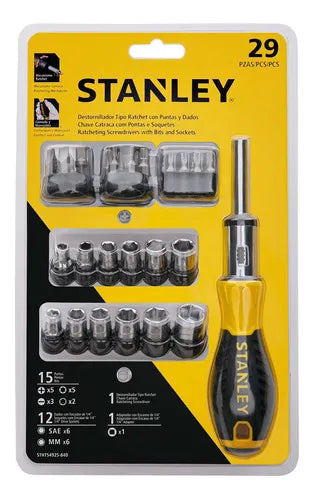 incluye • 1x destornillador tipo ratchet. • 1x adaptador para copas con encastre hex ¼. • 6x puntas phillips : 2 #1, 2 #2 y 2 #3. • 3x puntas planas: 2 de 1/4 plgs, 1 de 9/32 plgs. • 5x puntas torx: t10, t15, t20, t25, t27. • 2x puntas hexagonales: 1/8 plgs, 5/32 plgs. • 12x dados con encastre de 1/4 plgs: 1/4 plgs, 5/16 plgs, 11/32 plgs, 3/8 plgs, 7/16 plgs, 1/2 plgs, 5mm, 6mm, 7mm, 8mm, 9mm, 10mm.