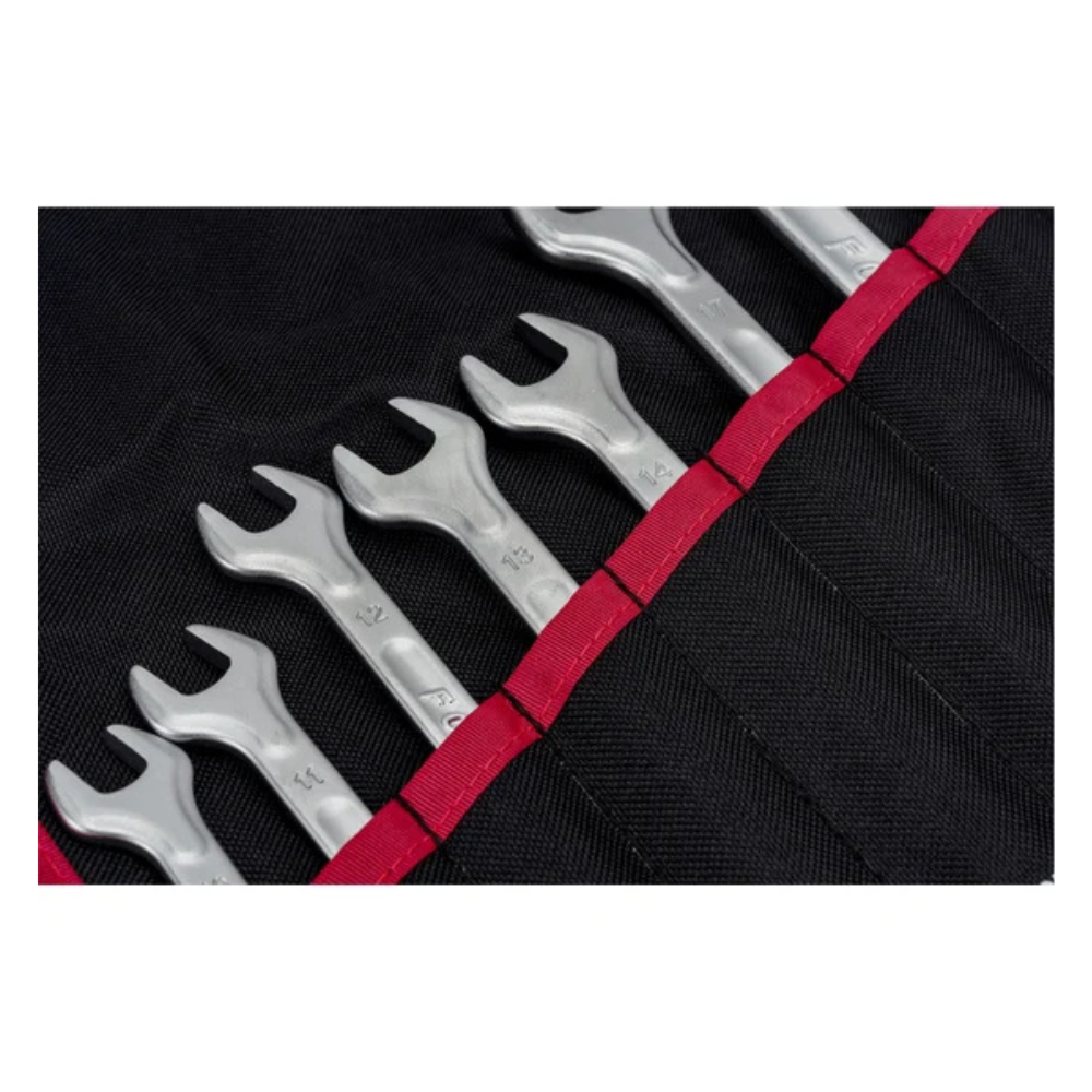 Juego de Llaves combinadas Punta Corona para uso en Taller Mecánico, sector Industrial, mantención; para aflojar o fijar tuercas y/o pernos para trabajos de uso rudo, construidas en Cromo Vanadio con nuevo diseño ergonométrico y puntos reforzado en donde se ejerce mayor fuerza.